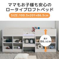 ロフトベッド ロータイプ 木製 収納付き 収納 コンパクト オープンシェルフ 可動棚 高さ調整 省スペース シングルベッド シングル 子供 大人