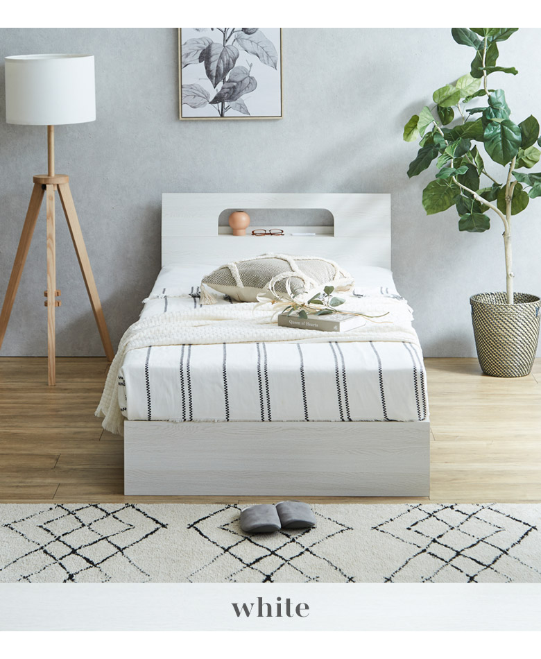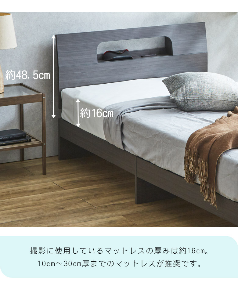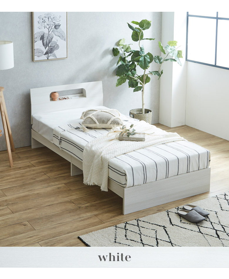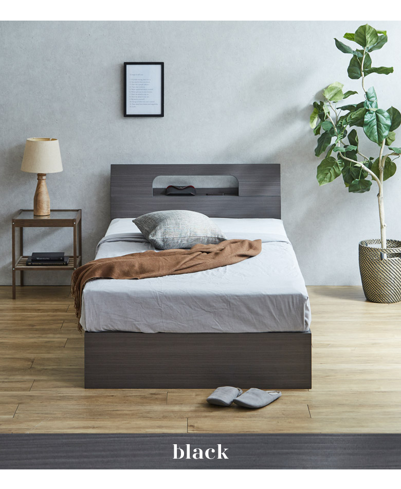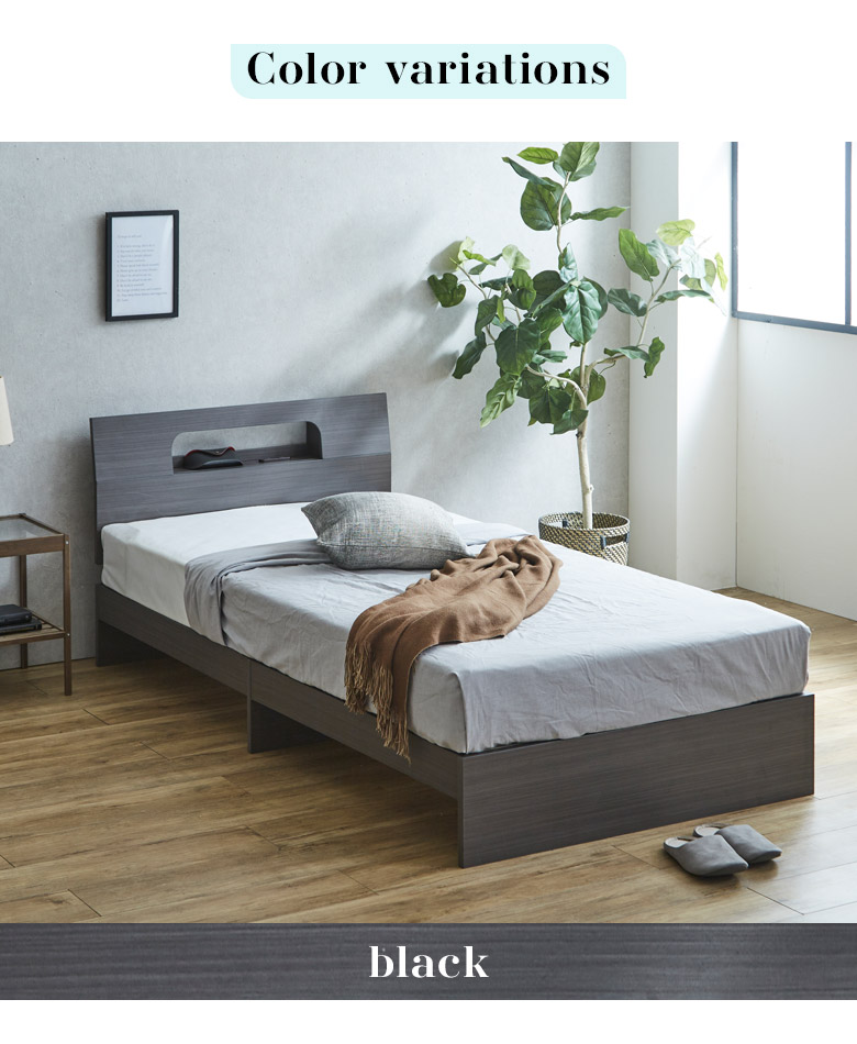 シングルベッドフレーム 宮棚付き コンセント穴付き カラーは3色から選択可能