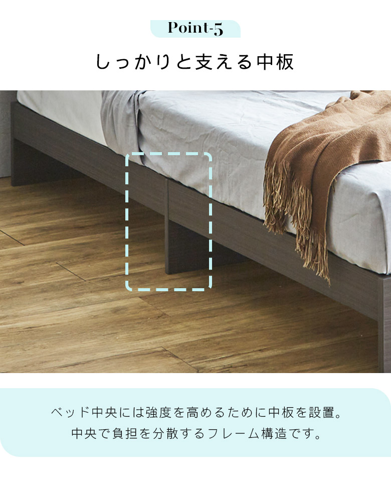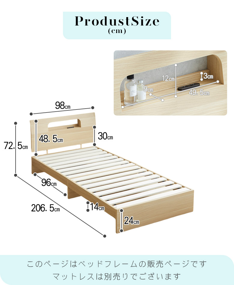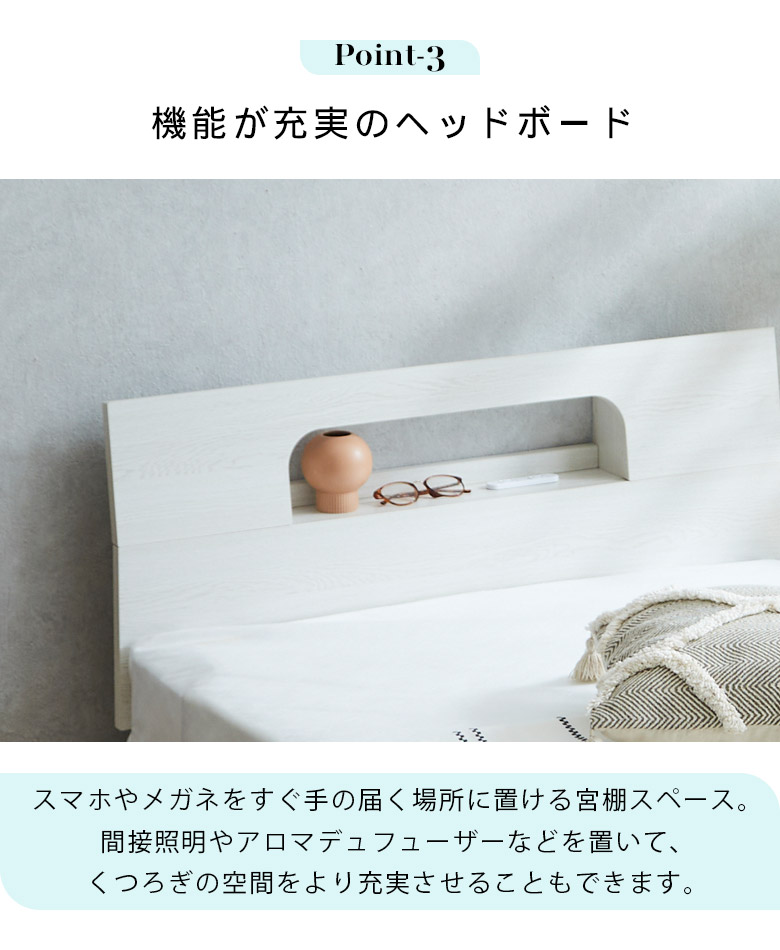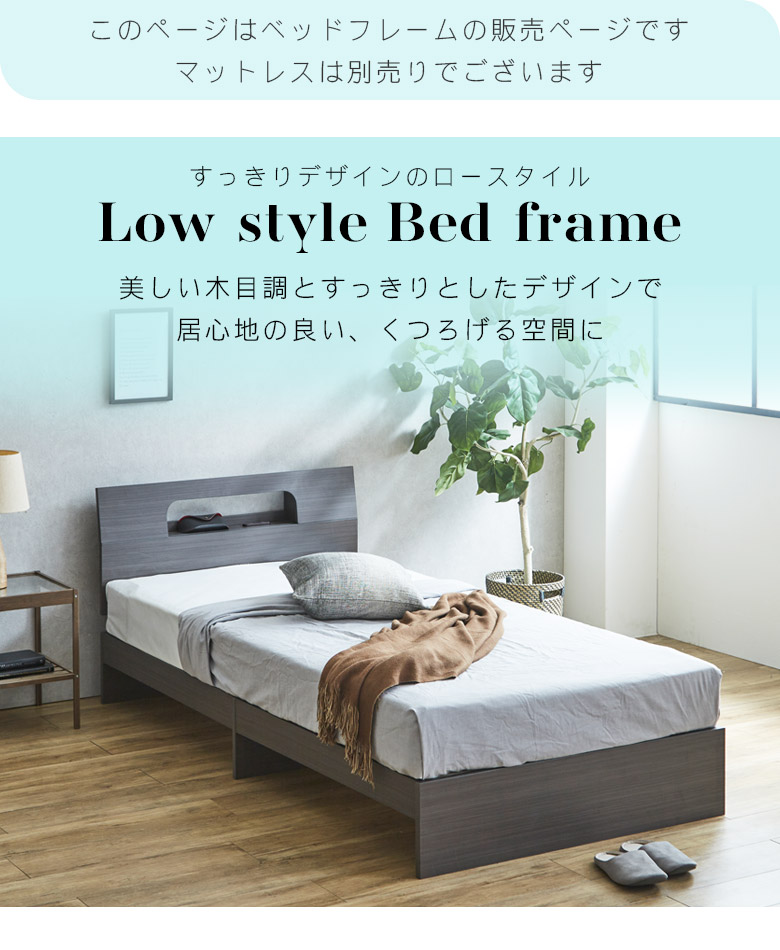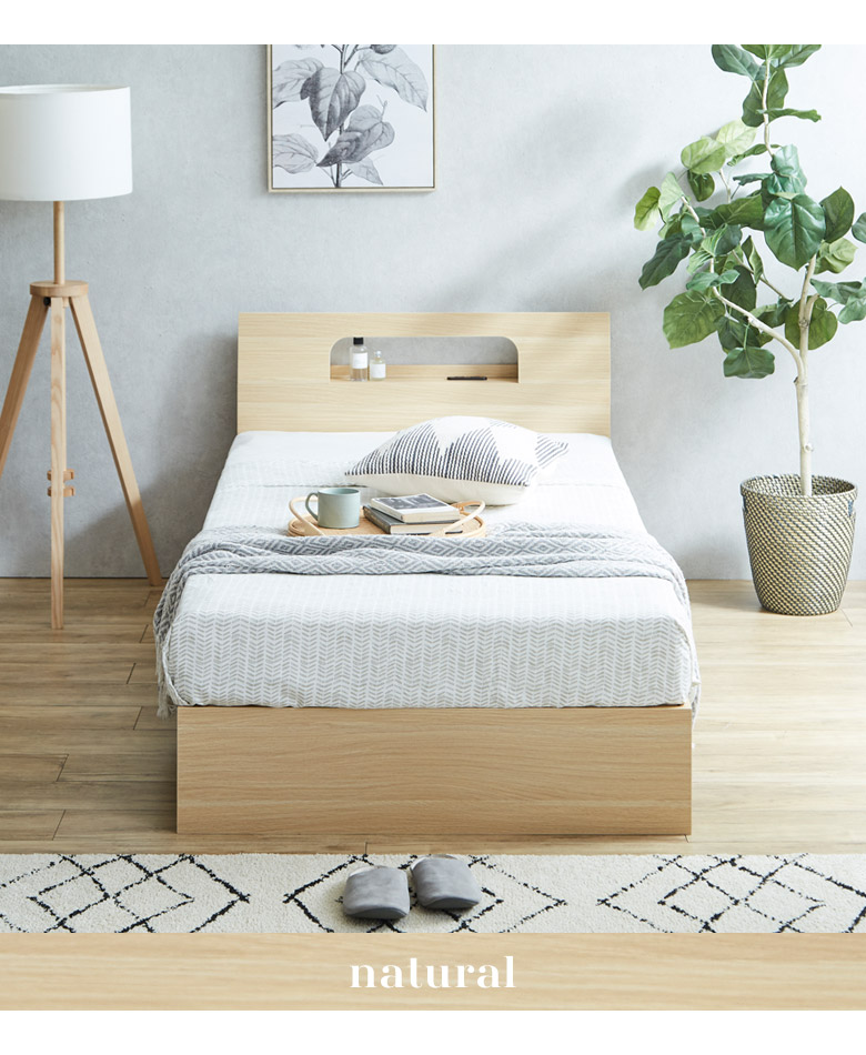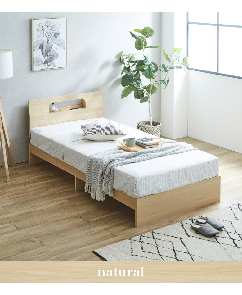 シングルベッドフレーム 宮棚付き コンセント穴付き カラーは3色から選択可能
