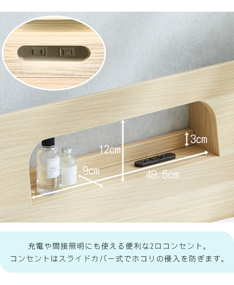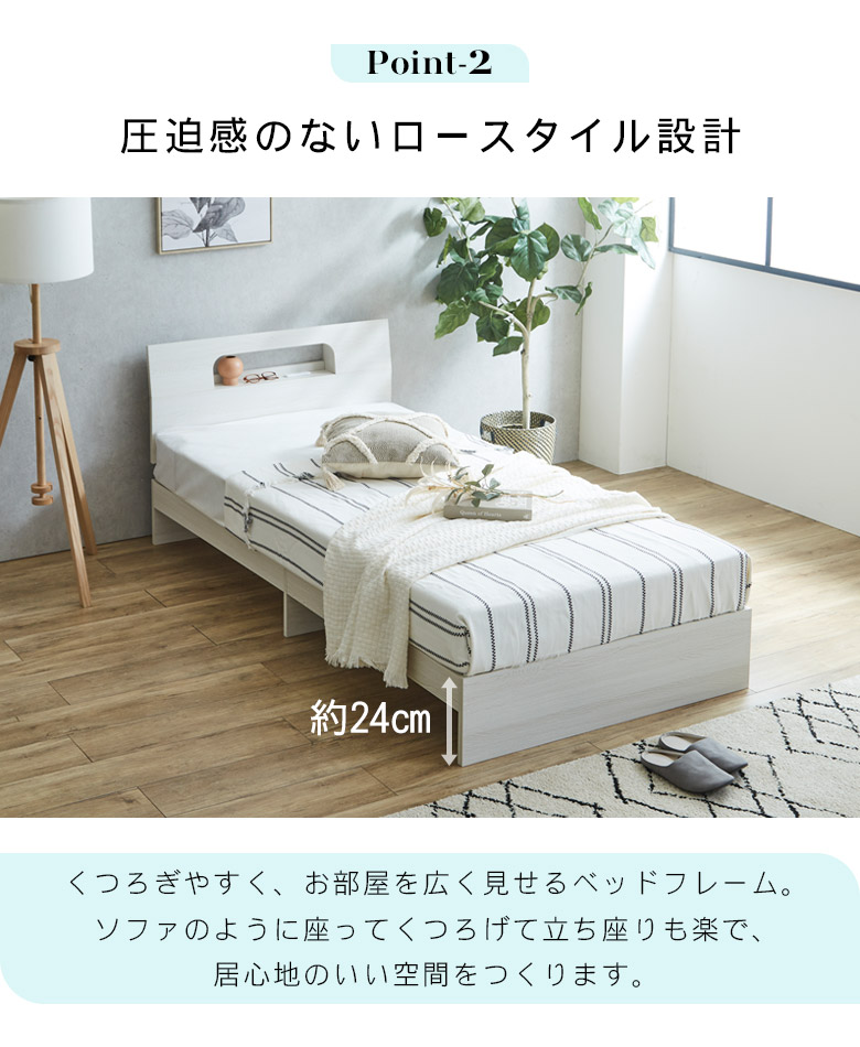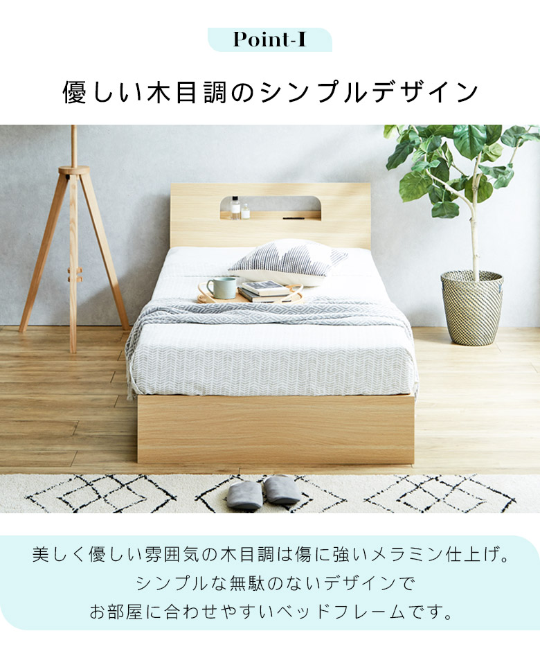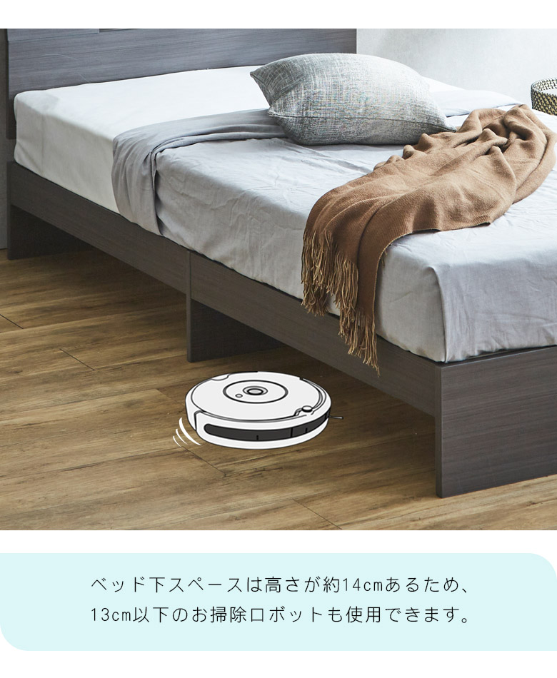 シングルベッド 宮付き ベッド シングル フレーム 2口コンセント付 すのこ お掃除ロボット対応 ベッドフレーム 棚付き おしゃれ