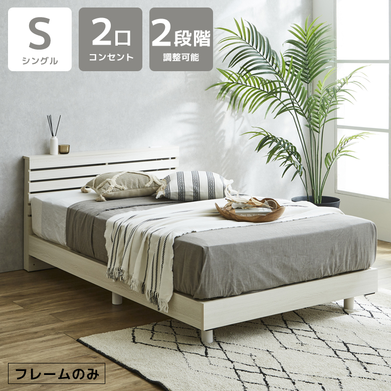 爆買 ベッドフレーム シングル すのこ シングルベッド フレーム ベッド 幅100 おしゃれ 2口コンセント付き すのこ床板 メラミン MDF LVLすのこ