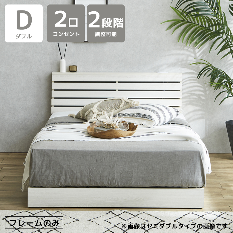 爆買 ダブルベッド フレーム ダブル すのこ 高さ調整 ベッドフレーム 幅140 おしゃれ ベッド 2口コンセント付き すのこ床板 メラミン すのこベッド