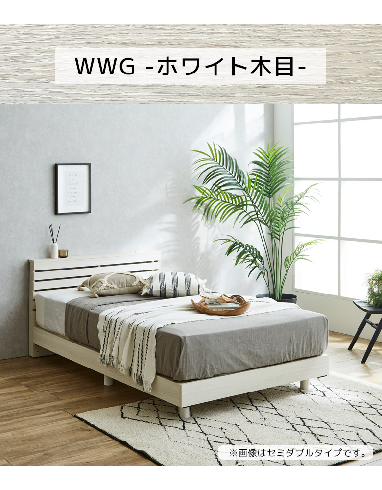 どんなインテリアにもなじんでリラックスできるくつろぎの時間を演出するベッドフレーム 脚は取り外し可能でロータイプにもできる2段階調整可能なベッド 小物を置けるちょい棚付き