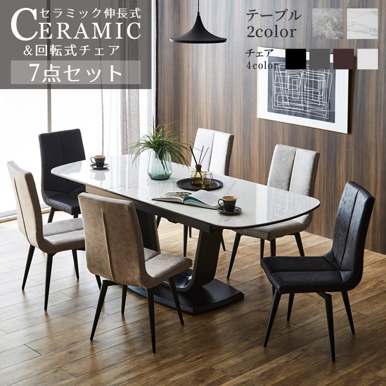 ダイニングテーブルセット 7点セット 6人掛け ダイニングセット 回転椅子 6人 伸長式ダイニングテーブル セラミック 白 北欧 伸長 テーブル 7点 伸長式テーブル