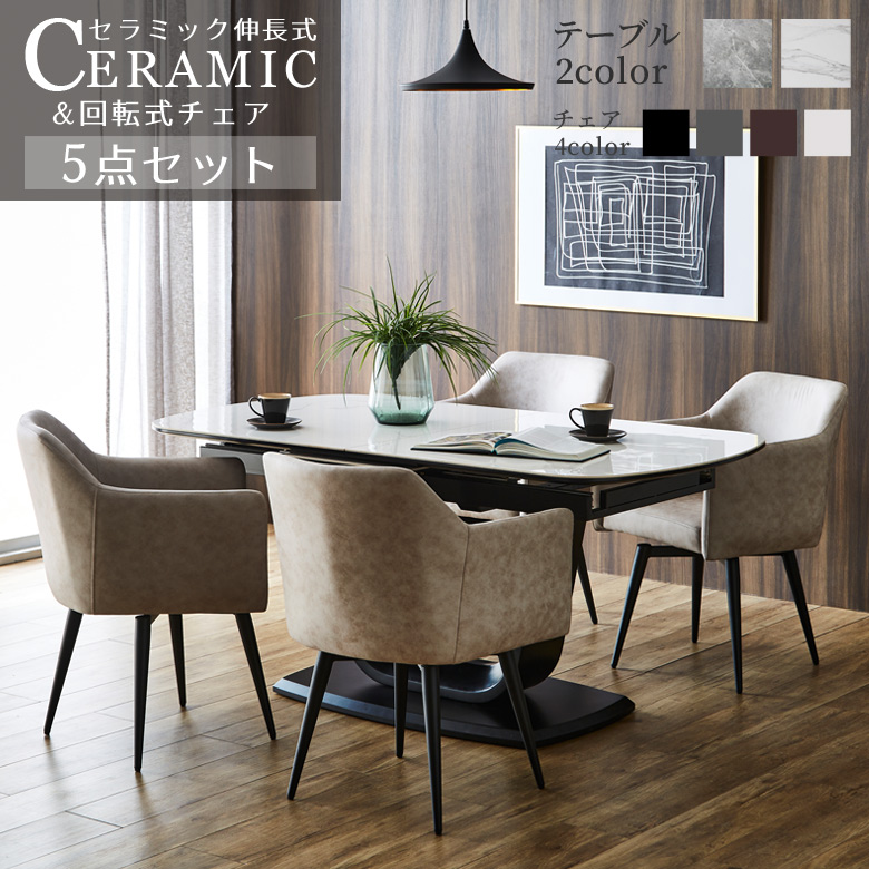 ダイニングテーブルセット 4人掛け ダイニングセット 5点セット 北欧 ダイニングテーブル 4人 チェア 回転式 肘付き 伸長式 テーブル 食卓セット セラミック 白