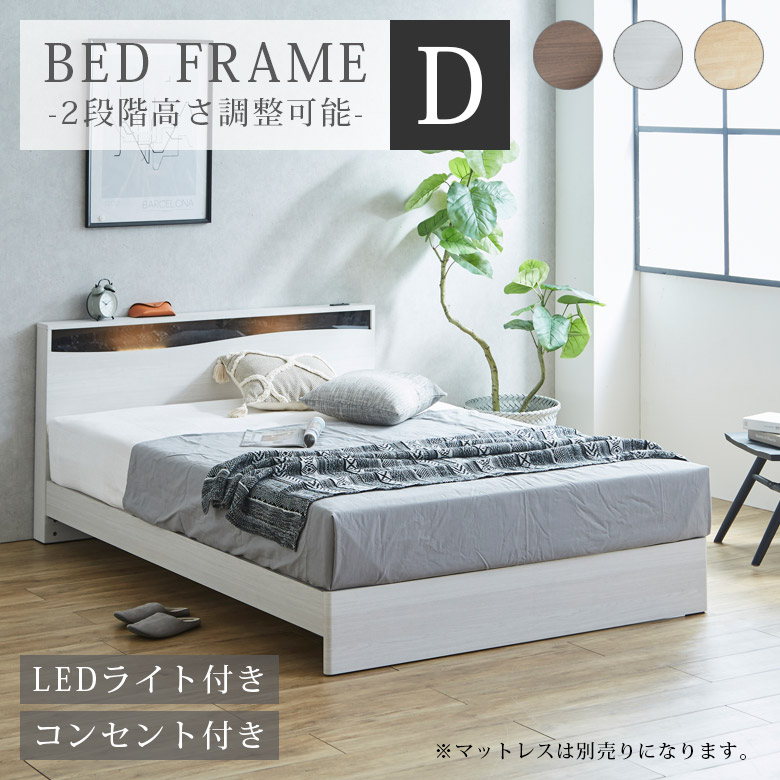 爆買 ダブルベッド フレーム すのこ ベッドフレーム ダブル フレームのみ 幅140cm おしゃれ 北欧 高さ調整 2段階 ベッド コンセント付き LEDライト付き