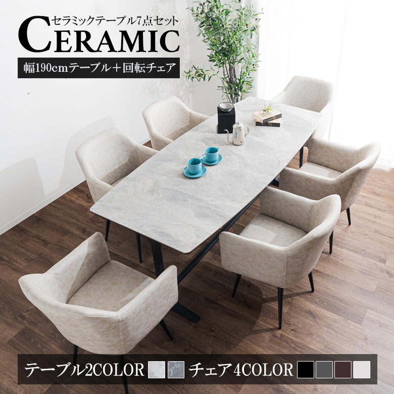 ダイニングテーブルセット 7点セット 6人用 190cm ダイニングテーブル 6人掛け セラミックテーブル おしゃれ モダン セラミック テーブル 幅190