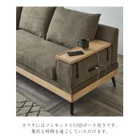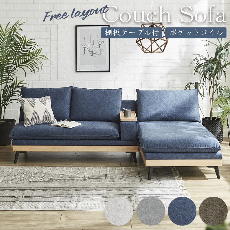 カウチソファ 3人掛け 幅240cm ソファ カウチ 入れ替え可能 棚板テーブル おしゃれ アイランドソファ ポケットコイル ファブリック ラバーウッド アイアン