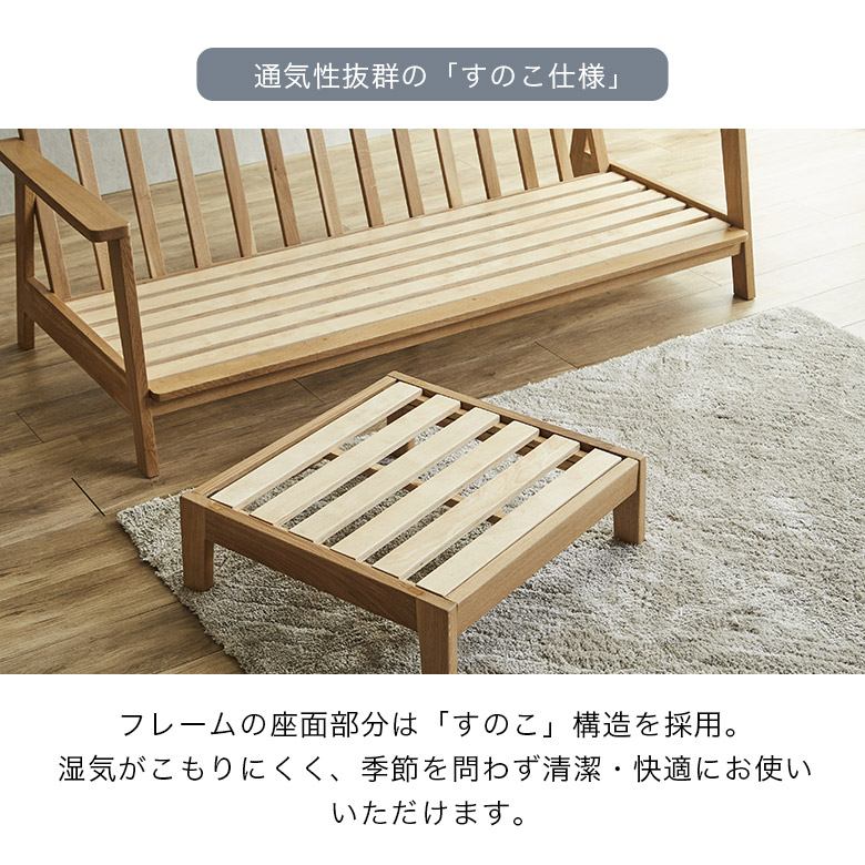 お部屋を落ち着いた空間に演出する天然木のフレームソファ。