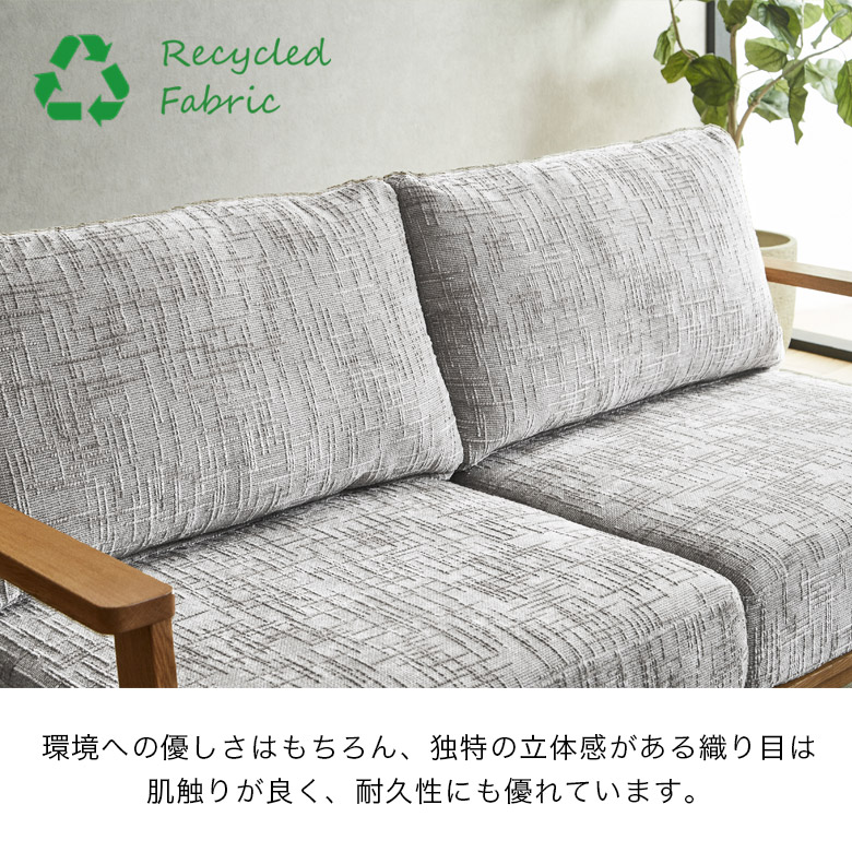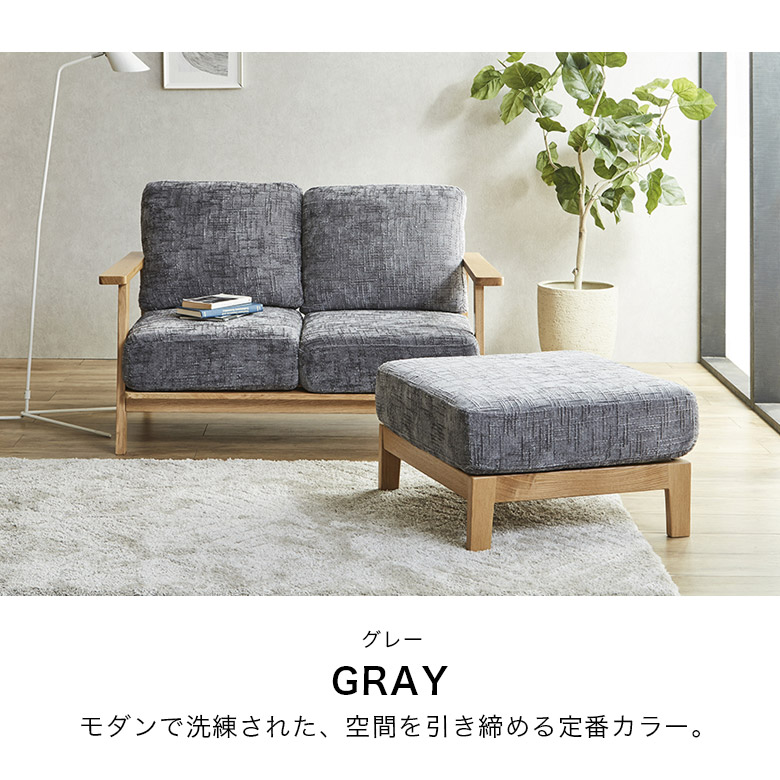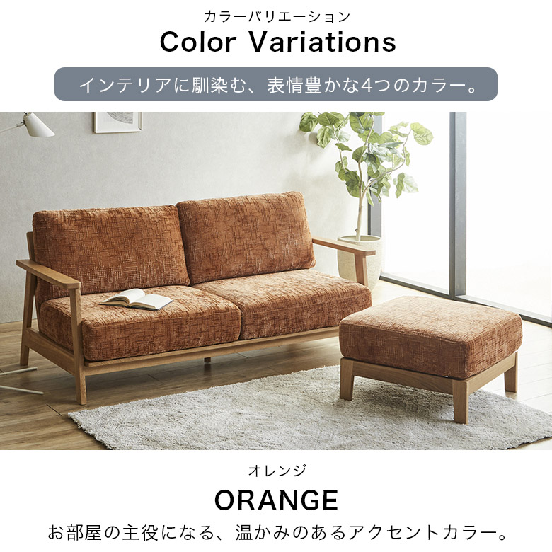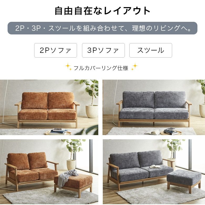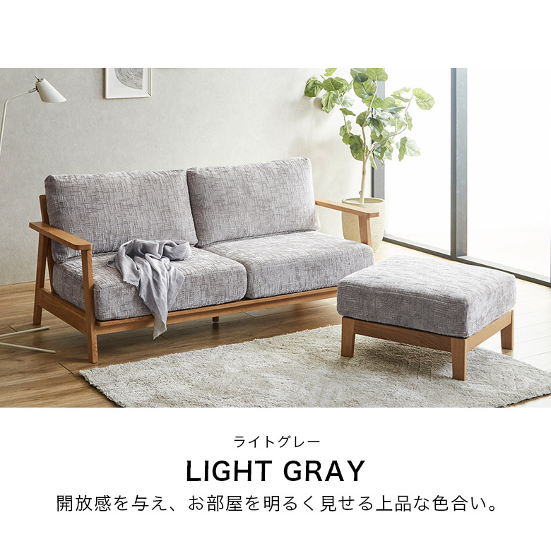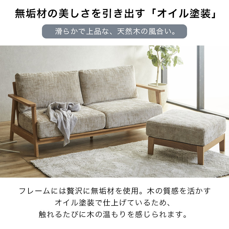カウチソファ 2人掛け 3人掛け おしゃれ 幅130cm 幅180cm ソファ リビングソファ スツール ファブリック 背もたれ クッション オーク無垢 ラバーウッド