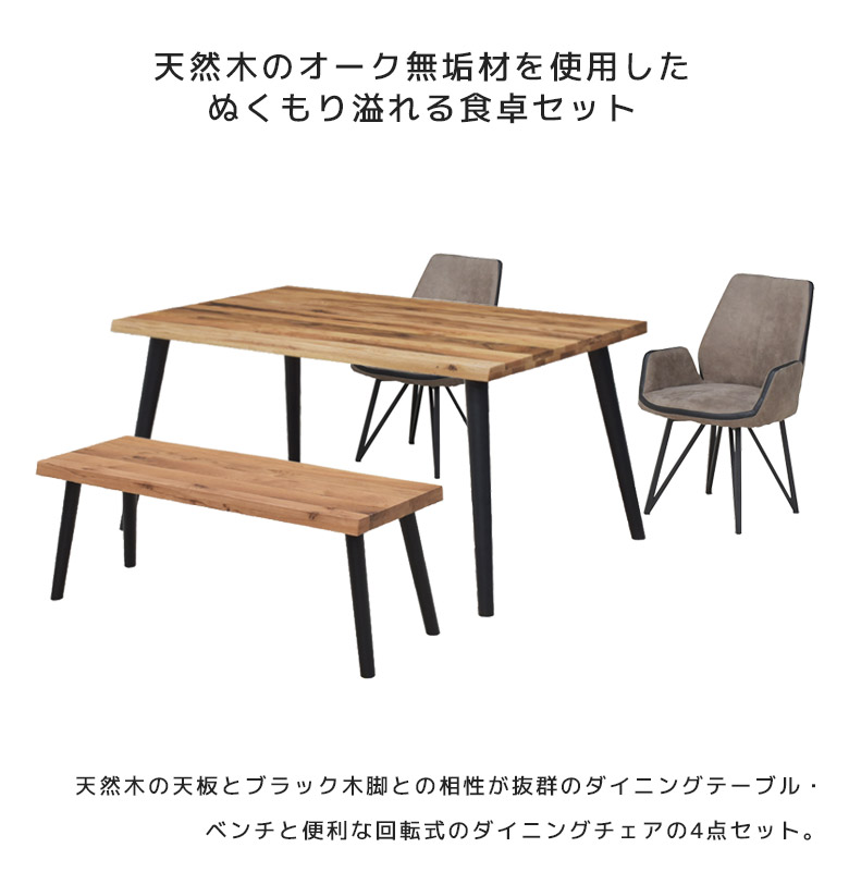 ダイニングテーブルセット 4点セット 4人掛け ダイニングセット ベンチセット 回転椅子 4人用 ベンチ テーブル ダイニングチェア 北欧