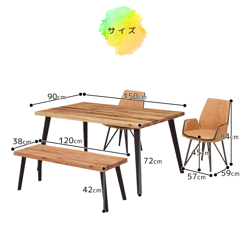 [チェア]幅57cmx奥行き59cmx高さ84cm、座面までの高さ:45cm