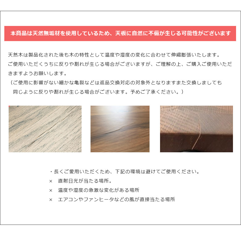無垢材特有の木目や節など素材の風合いをお楽しみいただけるダイニングセット。