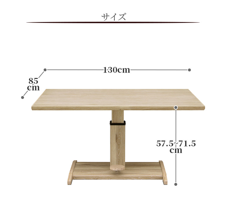 幅130cm×奥行85cm×高さ57.5〜71.5cm