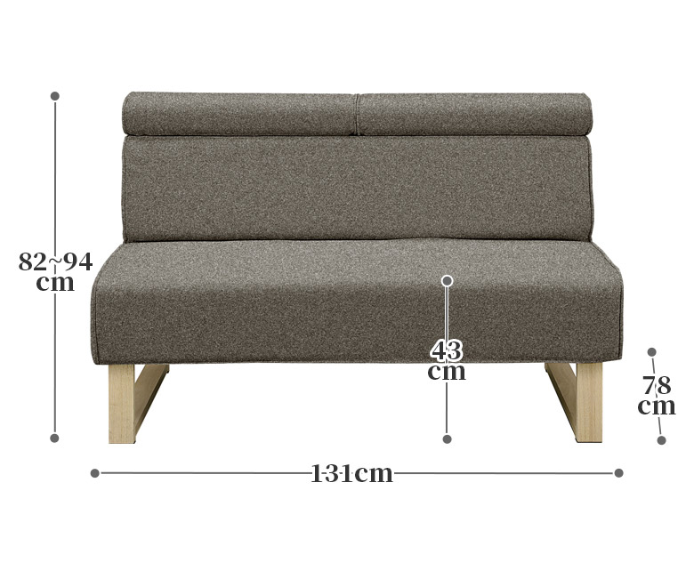 幅131cm×奥行78cm×高さ82〜94cm、座面高43cm