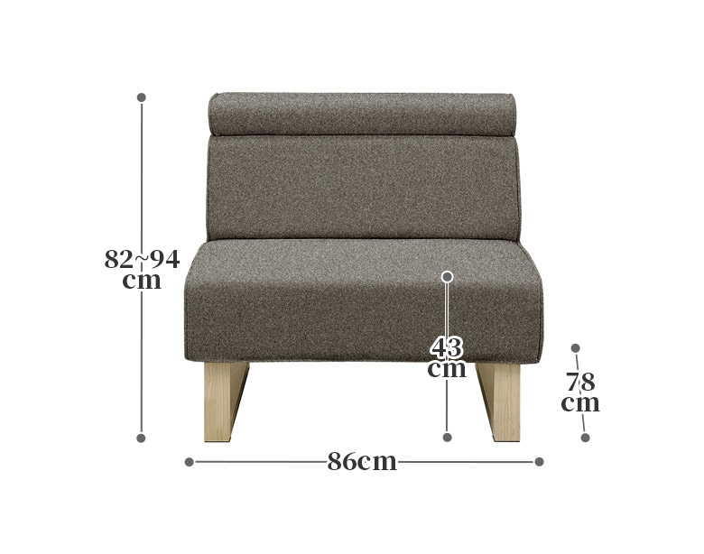 幅86cm×奥行78cm×高さ82〜94cm、座面高43cm