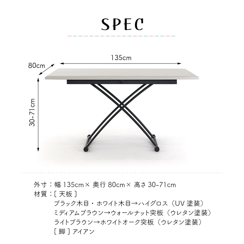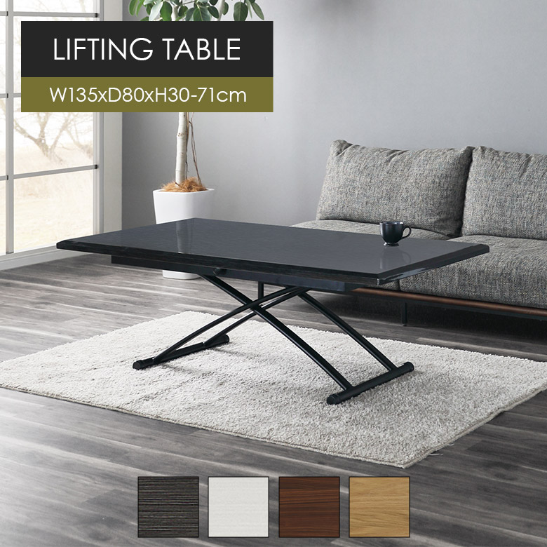 昇降式ダイニングテーブル 単品 幅135cm リビングテーブル 木目柄 デスク おしゃれ 北欧 シンプル モダン