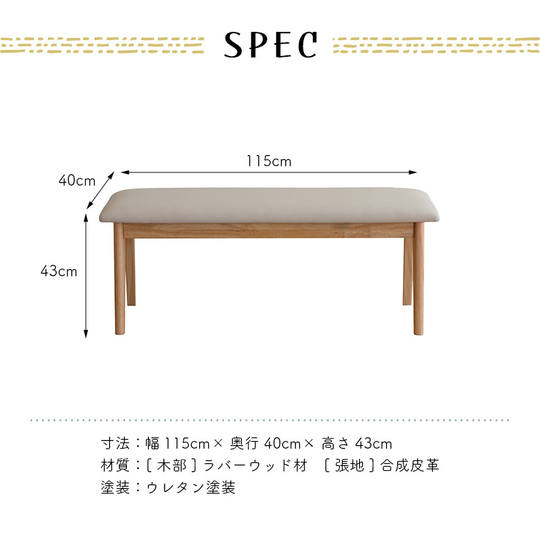 ダイニングベンチ 単品 幅115cm 2人掛け 木製 木脚 シンプル おしゃれ 北欧 ナチュラル モダン 合皮 合成皮革