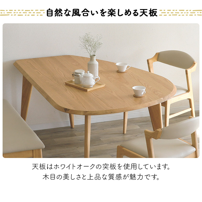[テーブル]天板ホワイトオーク突板・脚ラバーウッド材