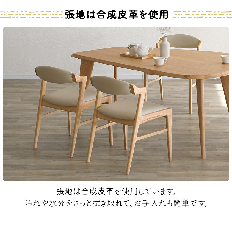チェアの張地は合成皮革なので、汚れや水分をさっと拭き取れてお手入れも簡単です。