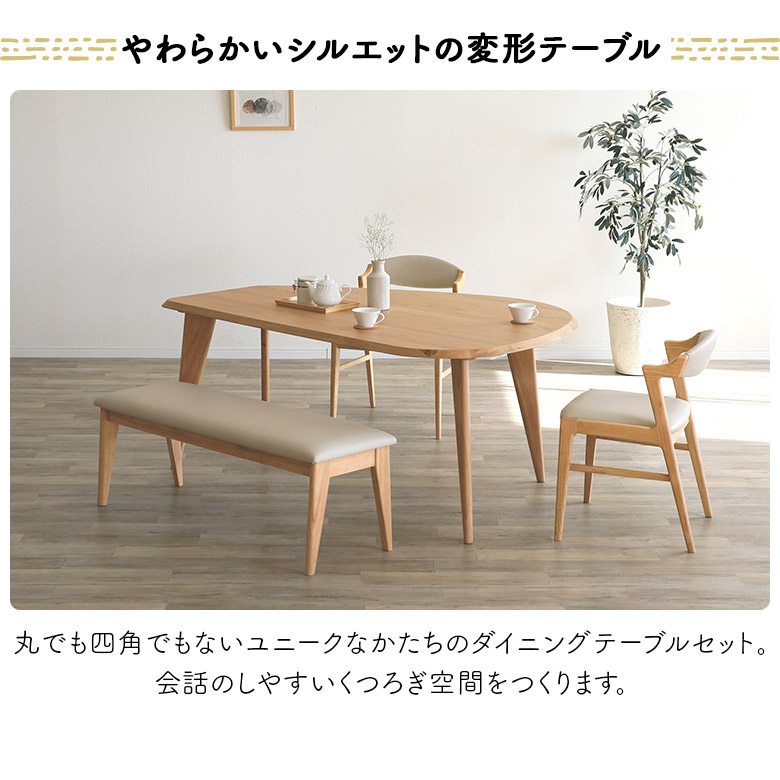 ダイニングテーブルセット 変形型 4人掛け 幅160cm ダイニングチェア 2脚セット 肘付き ダイニングベンチ 幅115cm 木製