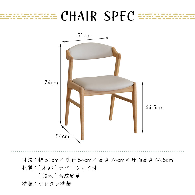 [チェア]幅51cm×奥行54cm×高さ74cm×座面高さ44.5cm