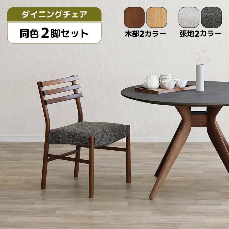 ダイニングチェア 2脚セット 肘なし おしゃれ シンプル モダン 北欧 木製 天然木 ホワイトオーク 無垢材 ファブリック