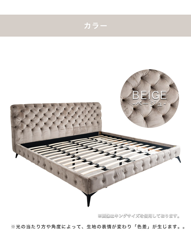 ダブルベッド ベッドフレーム おしゃれ 取り外し可能 ベッドのみ ベロア調生地 チェスターフィールド 脚付き 新生活