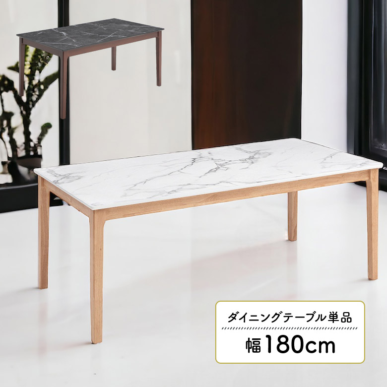 ダイニングテーブル テーブルのみ 6人用 4人用 単品 幅180cm 奥行90cm 石目調 大理石調 ストーン調 メラミン 木脚 ナチュラル