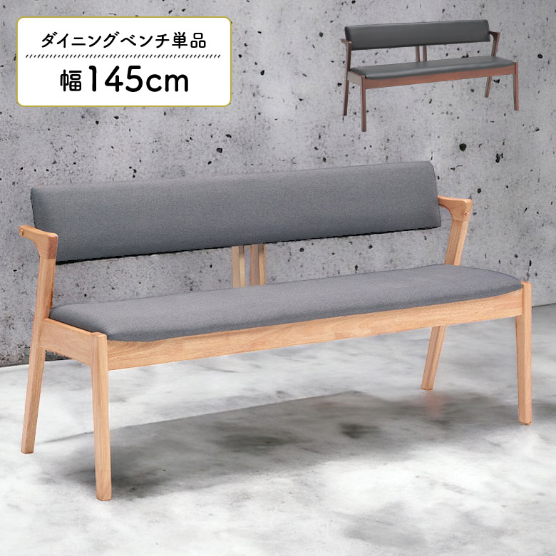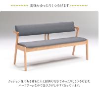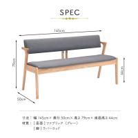 ダイニングベンチ 幅145cm おしゃれ シンプル 北欧 2人掛け ハーフアーム 背もたれ付き 肘付き ファブリック グレー 木脚 木製