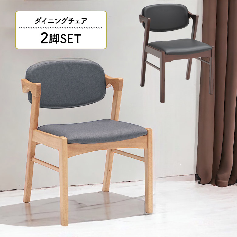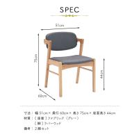 ダイニングチェア 北欧 おしゃれ シンプル モダン 2脚セット 肘付き ハーフアーム 木脚 木製 4本脚 ファブリック グレー