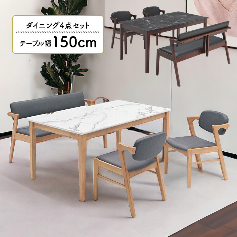 ダイニングテーブルセット 4人掛け 150cm 白 長方形 ダイニングセット ダイニングチェア 2脚セット ベンチ