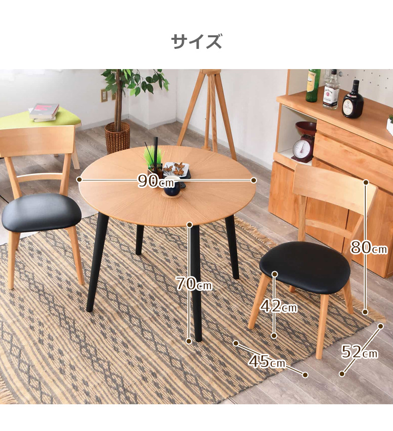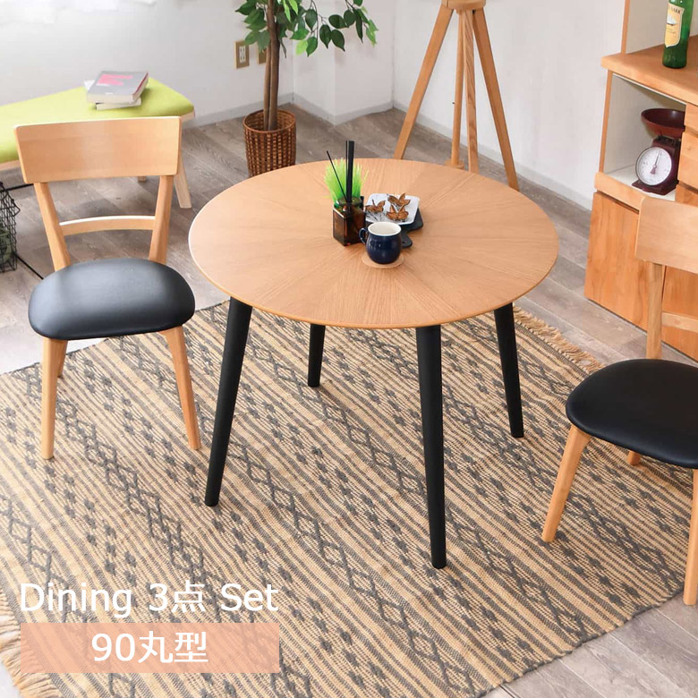 ダイニングテーブルセット 3点セット 2人掛け 幅90 オーク