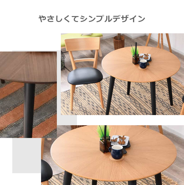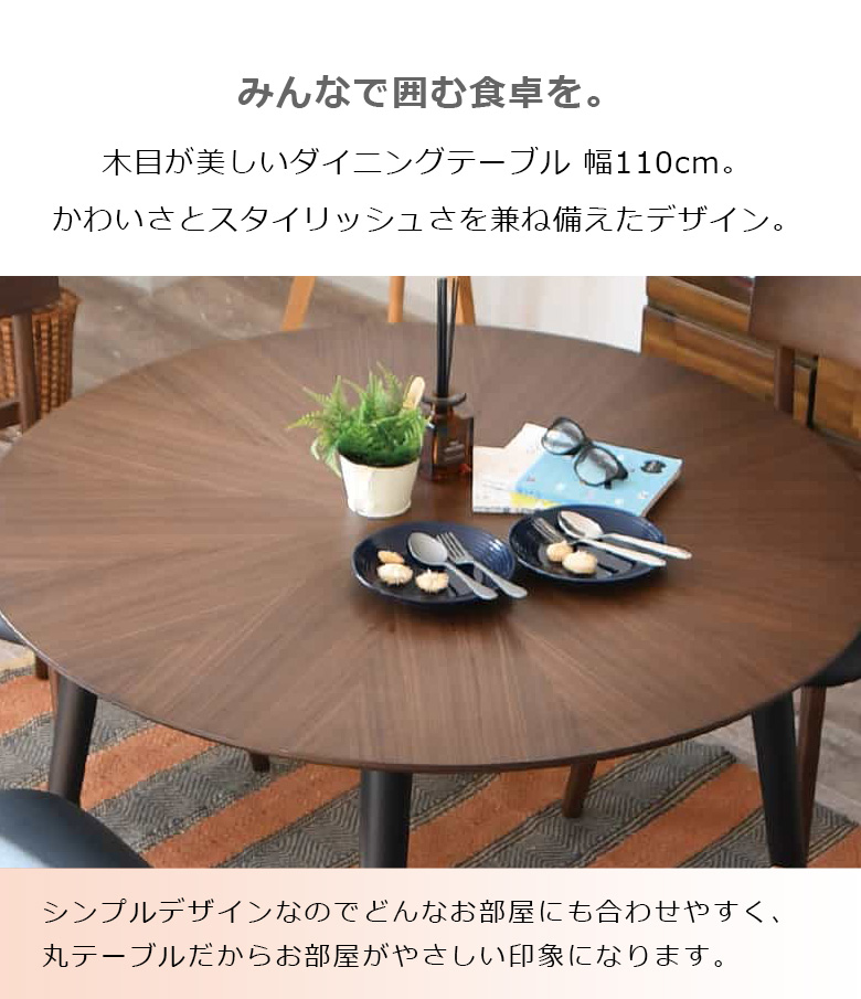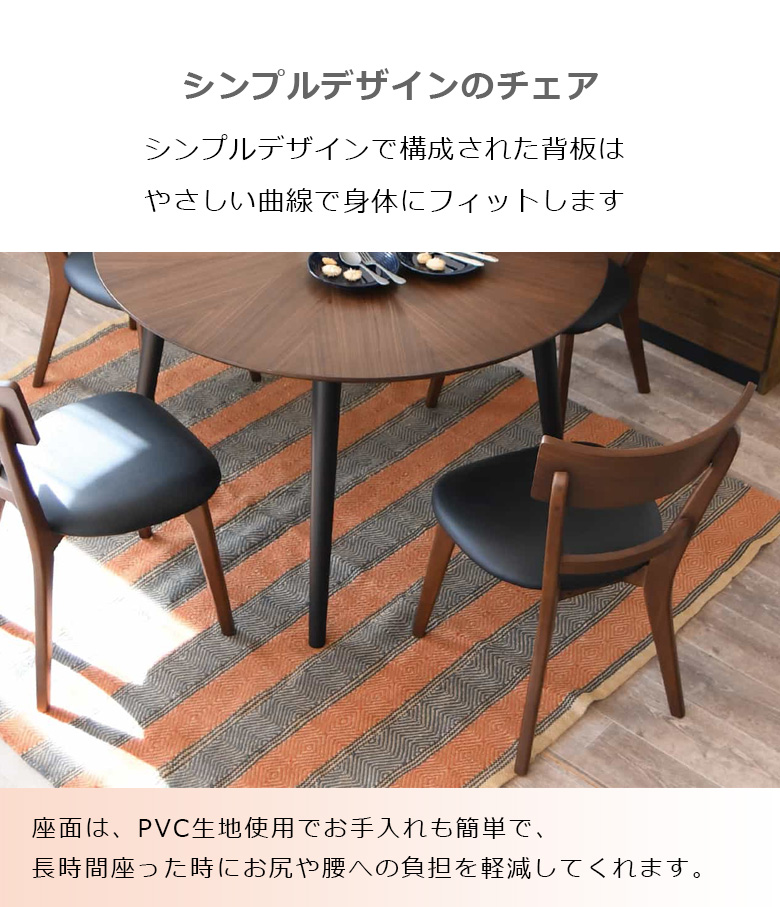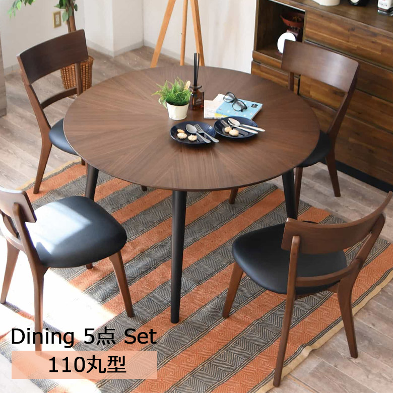 ダイニングテーブルセット 5点セット 4人掛け 丸 テーブル 幅110 チェア 肘掛け無し アームレス オーク ウォールナット 突板 PVC 合成皮革