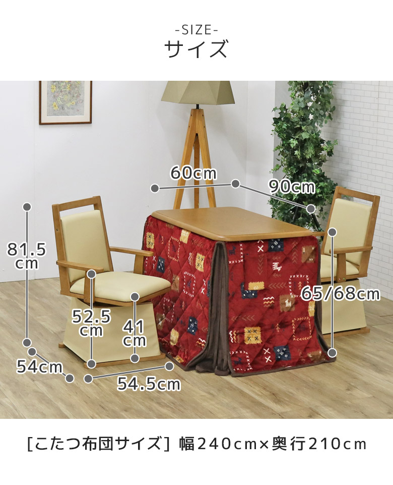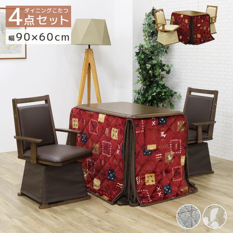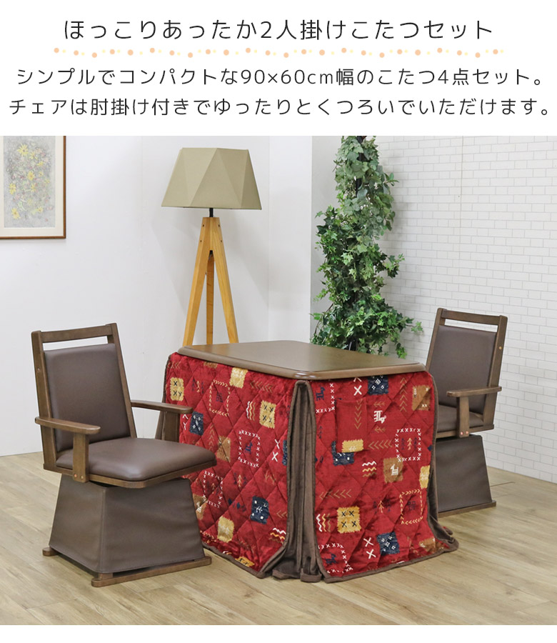 こたつセット ダイニングこたつ 2人掛け 幅90cm 長方形 ハイタイプ こたつ4点セット 2人用 こたつ 90 こたつ布団 回転式チェア こたつテーブル 暖卓