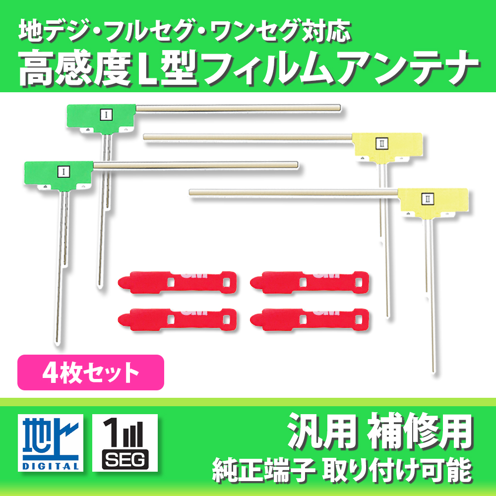 フィルムアンテナ 4枚 両面テープ 再利用 汎用 パナソニック 4本 高感度 L型 セット 補修 交換 地デジ ワンセグ フルセグ CN-HW860D CN-RE05D CN-RE05WD など