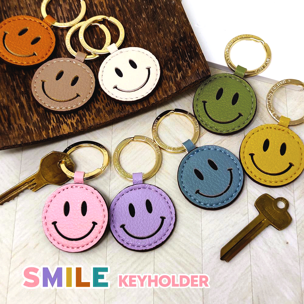スマイル キーホルダー ニコちゃん PUレザー キーリング バッグチャーム カラフル