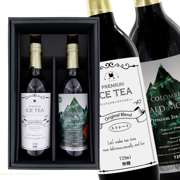 プレミアムアイスティー無糖&エメラルドマウンテン アイスコーヒー 紅茶&コーヒーギフト 720ml 2本セット 瓶詰 送料無料(沖縄を除く)