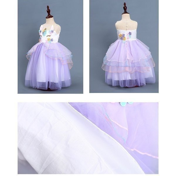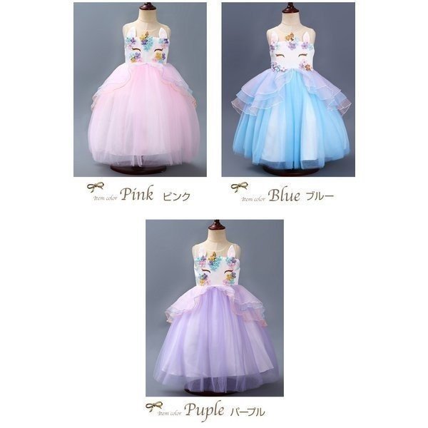 色鮮やかふわふわキラキラ ユニコーンドレスです。 発表会の衣装にいかがですか?? 柔らかく優しい肌触りの生地を使用しているので お子様にも安心してご使用いただけます。 ☆中にパニエを重ね履きされるとスカートがさらにふんわりcute♪ 姉妹やお友達とのおそろいペアルック。 かわいいお孫さんへのプレゼント ギフトとしてもオススメです^^ - 上質で高級感溢れるとてもかわいい女の子フォーマルドレスです。