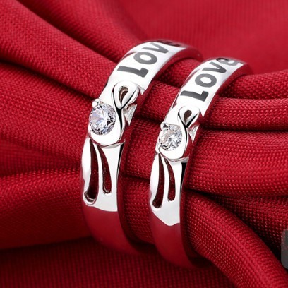 指輪レディース&メンズペアリング★指輪CZダイヤモンドLOVEロゴデザインのペアリング♪