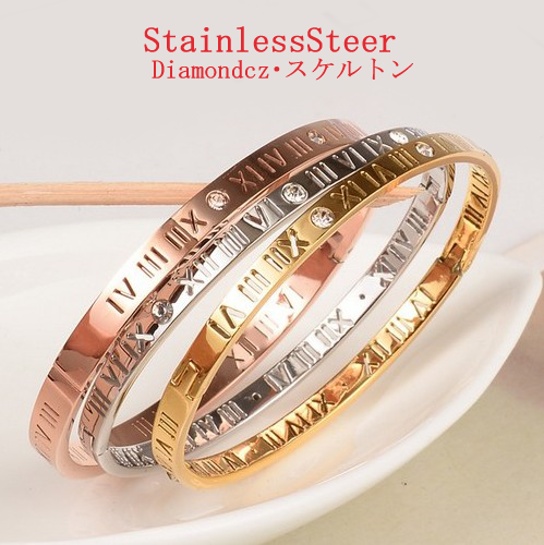 CZダイヤモンド/ブレスレット バングル レディース ローマ数字 ステンレス ワンタッチ 送料無料 アレルギー。