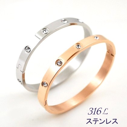 バングル レディース ピンクゴールド サージカルステンレス 金属アレルギー対応 18金 キュービックジルコニア ブレスレット 送料無料
