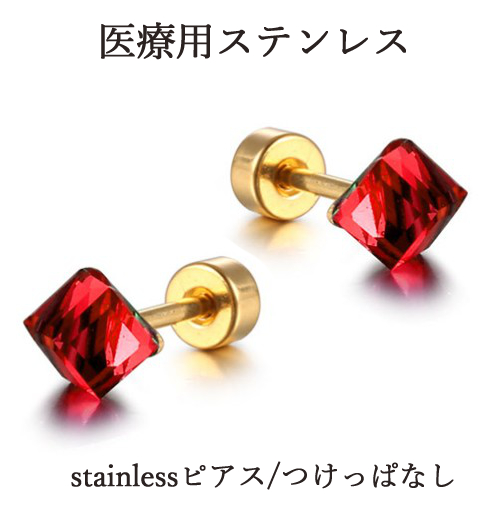 ピアス スタッド レディース 軟骨 サージカル ステンレス スクエア キューブ サイコロ つけっぱなし ネジ式 送料無料 アレルギー