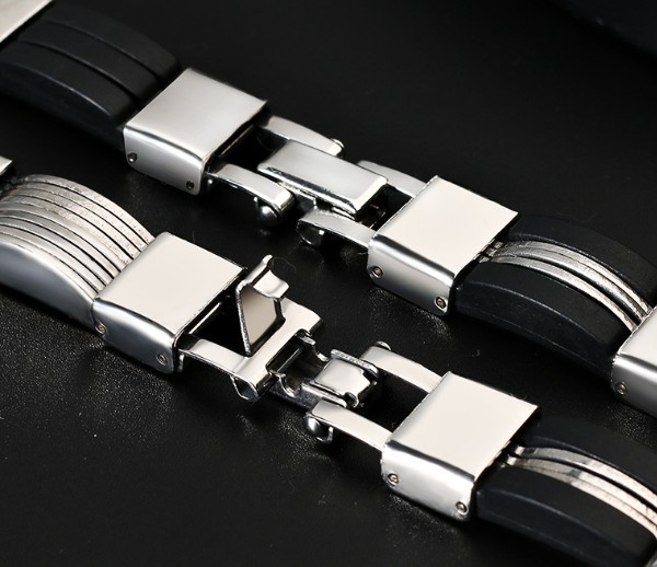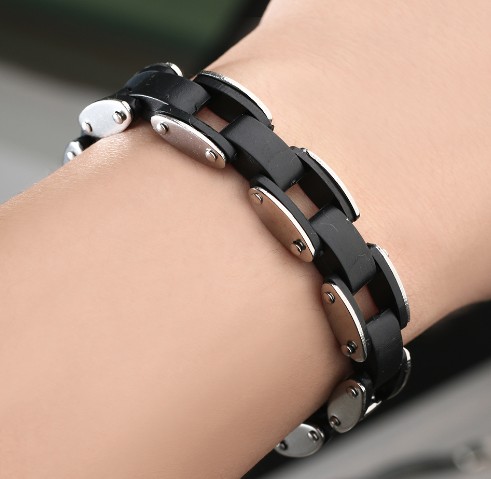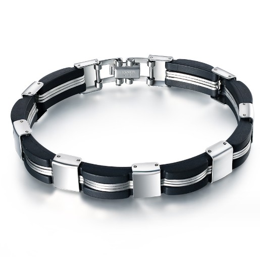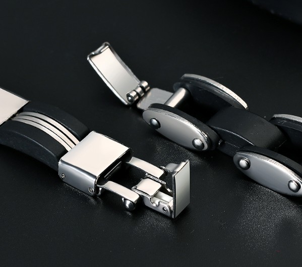 バングル メンズ ブレスレット サージカル ステンレス腕輪 シリコン金属 ブラック黒色 ラバー