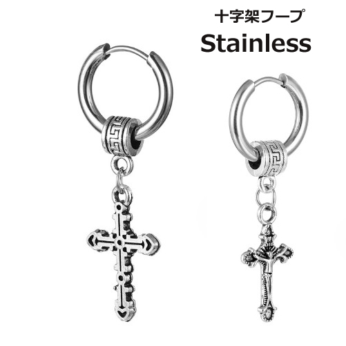 ピアス メンズ フープ 金属アレルギー対応 片耳用1点 十字架 クロス メタル 金属 サージカル ステンレス ループ つけっぱなし