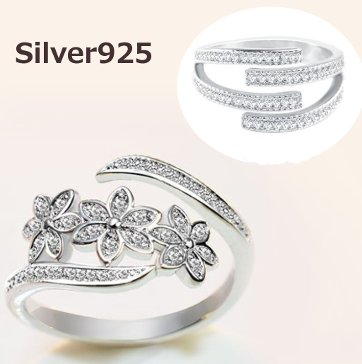 花 フラワーY字 華/幅広ボリューム シルバー925キュービックジルコニア フリーサイズ指輪シルバー925リング!