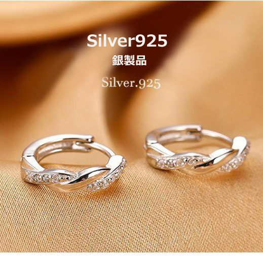 小さめフープ銀色シルバーカラー洗練された輝きを纏う、ツイストデザインのフープピアス。