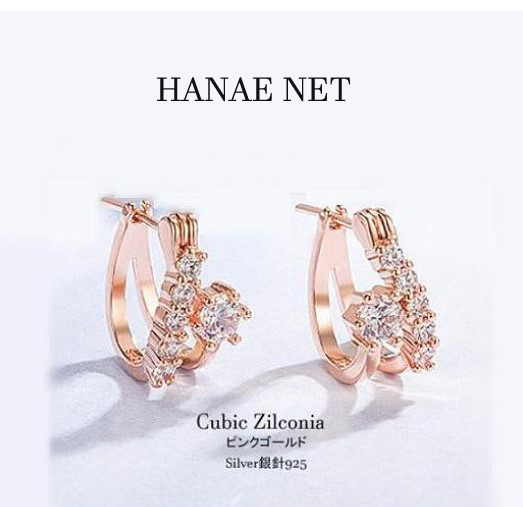 フープピアス レディース CZダイヤモンド 18金 ピンクゴールド アレルギー対応 シルバー925 両耳用2個セット