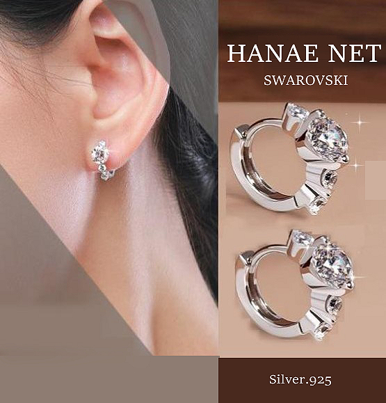 フープピアス レディース 金属アレルギー対応 SILVER スワロフスキー リング 両耳2個セット・即日翌日発送させて頂きます。