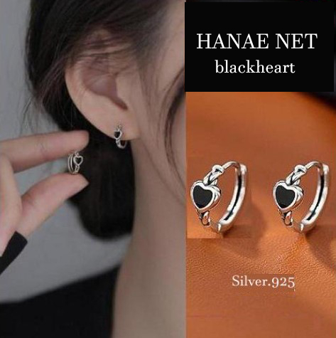 フープピアス レディース アレルギー対応 エンジェルハート可愛い ブラック heart 人気 シルバー925 つけっぱなし